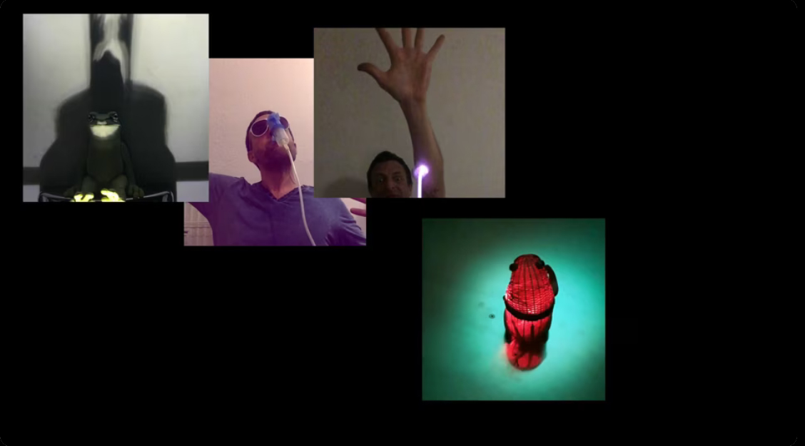 die Filmcollage von Chr Chr, Material aus einem Waldzoo in der Nähe von Berlin, taifun nr.19 auf Yokohama und Selfies der Musiker.